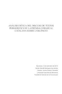 | 2010. Anàlisi crítica del discurs de textos periodístics de la premsa comarcal catalana sobre l'okupació |