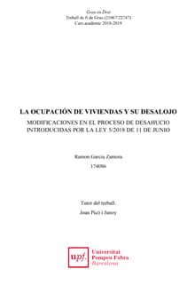 | 2019. La ocupación de viviendas y su desalojo. Modificaciones en el proceso de desahucio introducidas por la ley 5/2018 de 11 de junio |