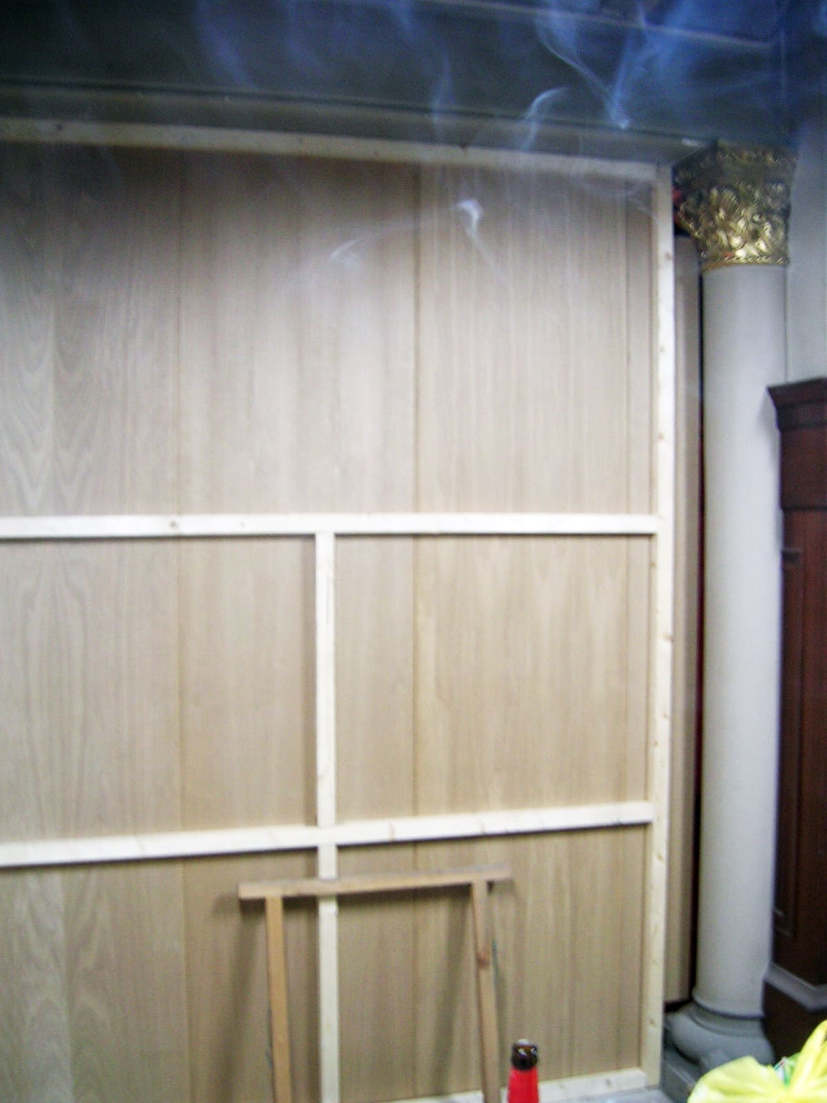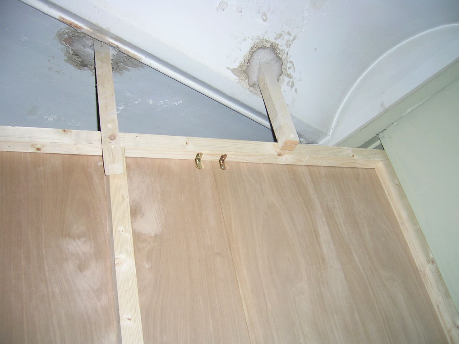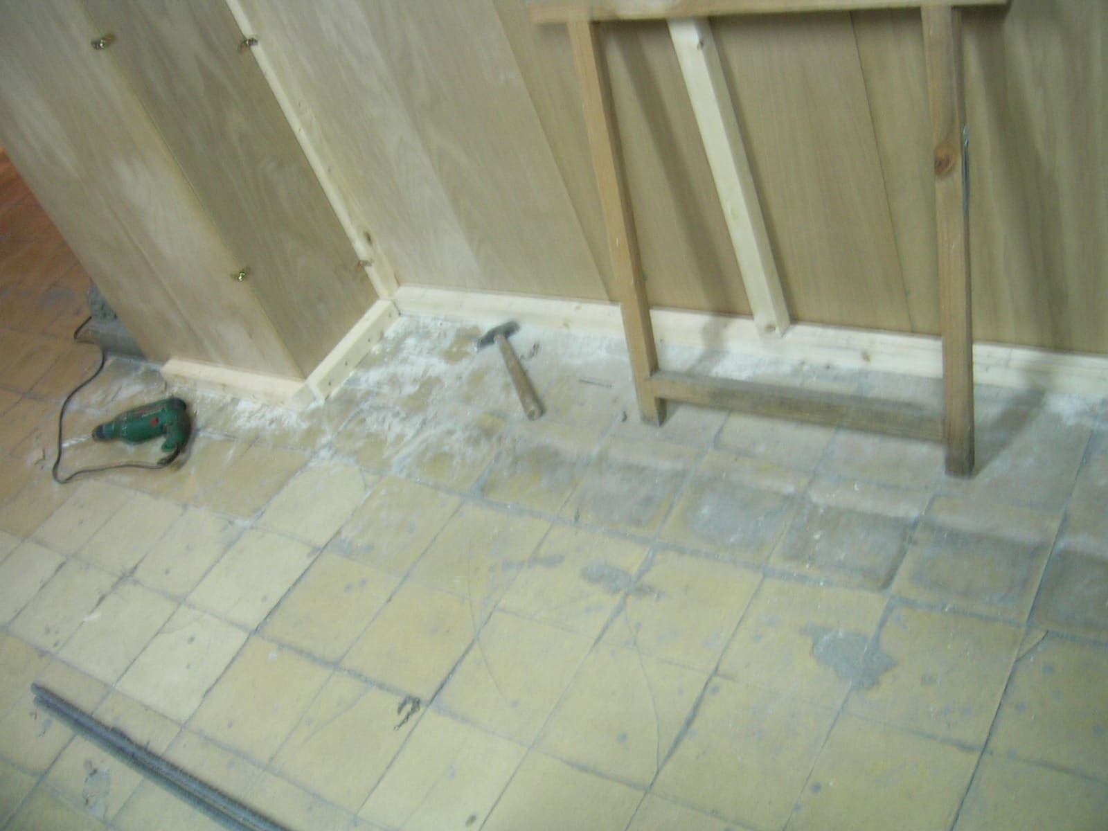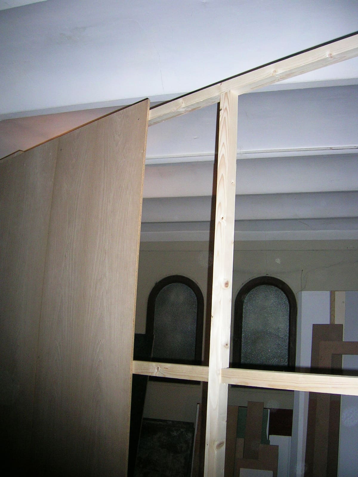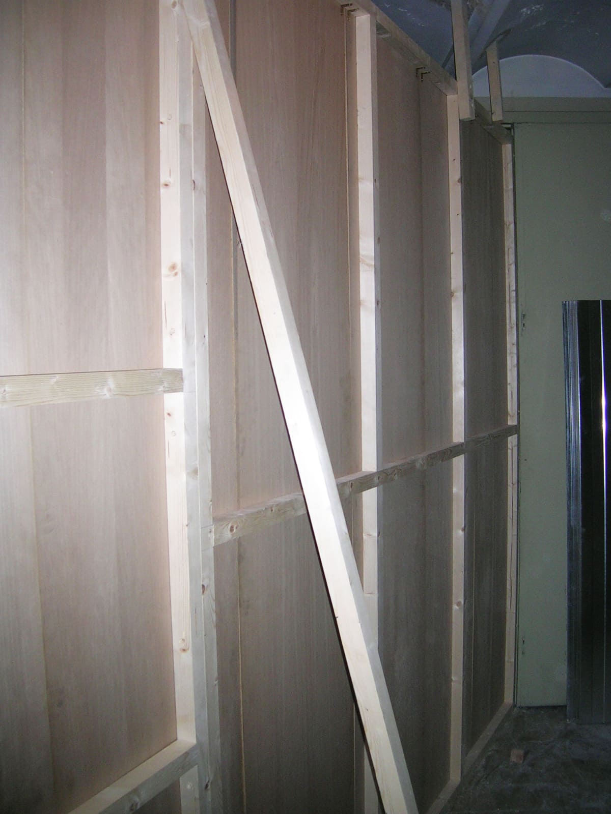 - Seguidamente ancla el listón que va al suelo. Lo puedes hacer de diversas maneras, con cola, tornillos, escuadras... y a partir de aquí vas montando el marco cogiendo los listones con escuadras y con tornillos, el resto de listones que hacen de marco los tendrás que sujetar a las paredes y al techo.