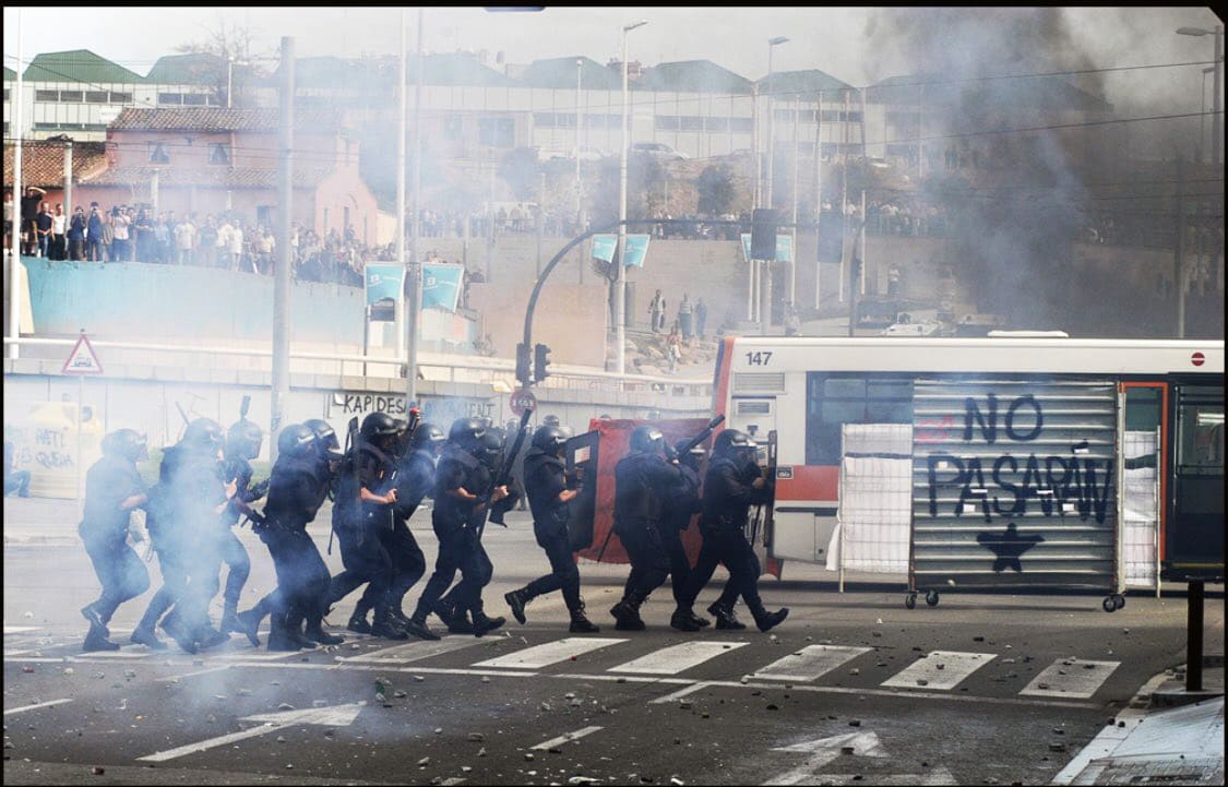 Hay que poner atención a los números de placa de la policía, si la llevan. Y si es posible, comunicar a la gente que está afuera lo que ocurre en el interior, así como colocarse en lugares visibles para tener contacto ocular. Es buena idea proponerle a alguien de confianza que grabe en video el desalojo como posible prueba para una posterior denuncia (arts. 169, 172-173 y 175 CP). Dependerá de las circunstancias, pero en principio si no se opone resistencia es poco probable que haya detenciones. Si hubiera acción directa y la policía recogiera daños, aprovechará para detener y reprimir. La policía además inventa agresiones y relatos falsos de lo sucedido, teniendo una presunción de veracidad que no tiene base procesal alguna, salvo para algunos procesos sancionadores administrativos. Tengamos en cuenta que si alguno de ellos resulta herido, la policía querrá que alguien pague por ello. Por otro lado, si en los disturbios todo el mundo ha podido escapar quizá no se haya conseguido parar el desalojo pero se habrá creado la sensación de controlar las calles.