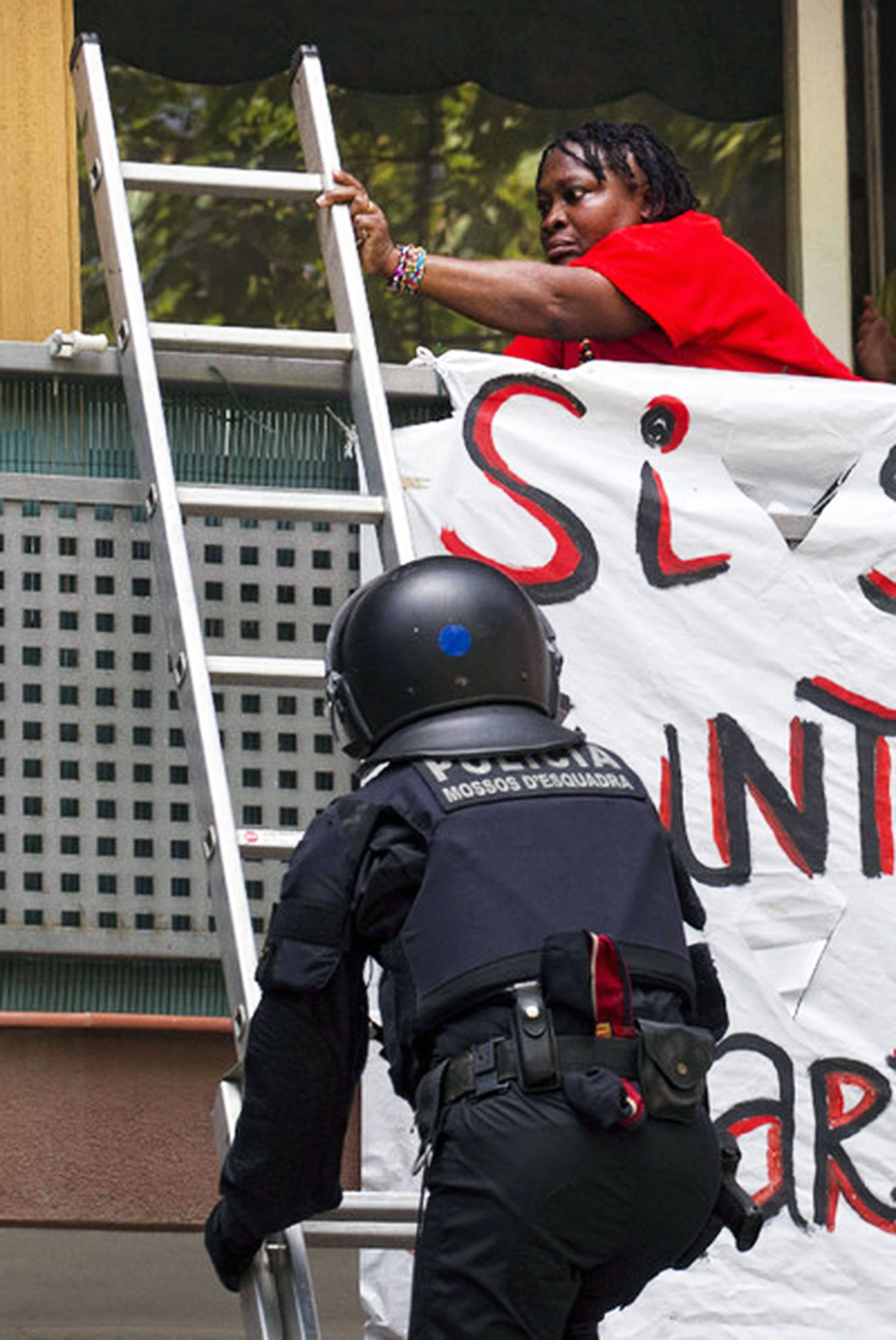 Salvo en algún caso administrativo, el cuerpo de los mossos d'esquadra es la policía en Catalunya que lleva adelante los desalojos. Aparecen muy temprano, vienen con furgonetas, equipo de antidisturbios y herramientas para llevar a cabo el asalto, esto puede incluir escaleras, mazas, arietes, radial… Como cualquier policía es común que los mossos d'esquadra sean violentos y agresivos y actúen golpeando y empujando a la gente y saltándose las leyes. Debéis estar preparadxs para esa situación. Podéis intentar documentar cualquier tipo de abuso y debéis procurar que nadie quede solx ante la policía, es prioritario permanecer en el grupo de afinidad y mantener la calma durante el desalojo.