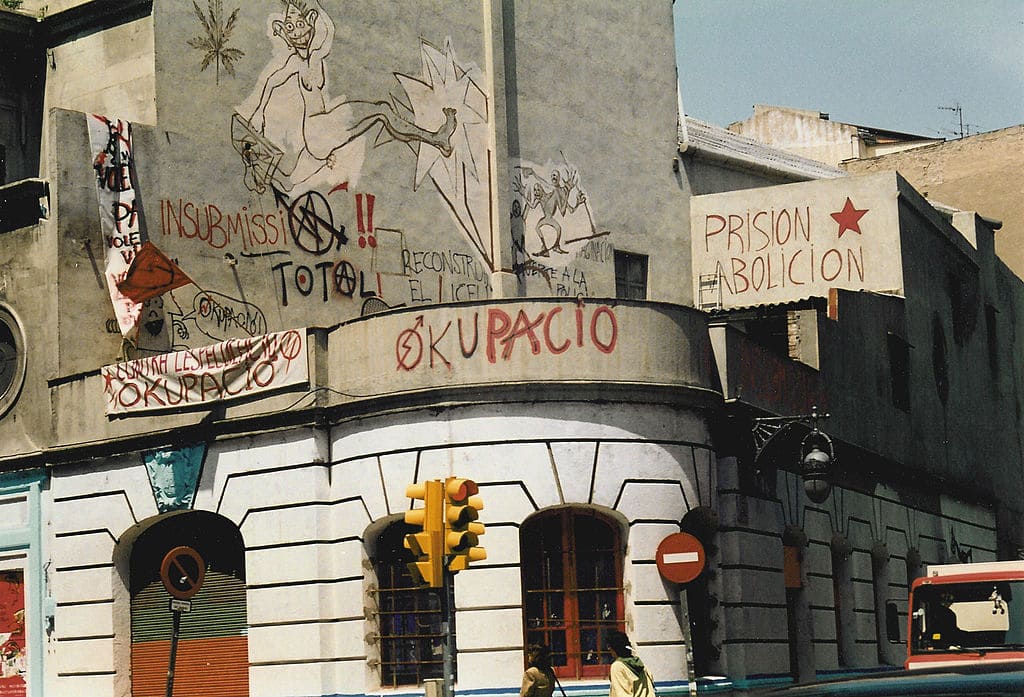 Con la reforma del Código Penal de mayo de 1996 la okupación de inmuebles en situación de abandono es definida como delito de usurpación (art. 245.2 CP). Esta medida invisibiliza el conflicto existente entre la especulación urbanística e inmobiliaria y la necesidad de un amplio sector de la población de acceder a una vivienda y de disponer de centros sociales, políticos y culturales. Esto jurídicamente se sostiene desde el ámbito penal dándole una protección adicional al derecho a la propiedad (art. 33 CE), mientras que el disfrute de una vivienda digna y adecuada (art. 47 CE) es meramente un derecho virtual, un derecho programático cuya aplicación dependerá de la existencia de un parque público de viviendas, y no un derecho propiamente dicho cuya protección pueda pedirse directamente ante los tribunales.